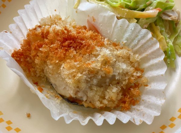 ☆ 「さわらのパン粉焼き」は、サクサクのパン粉とさわらを一緒にいただきます。パン粉には溶かしたバターをからめておきます。焼き上がりはバターの香りが広がりました。