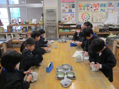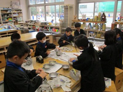 今日の図工は「おめでとうだるま」作りです。