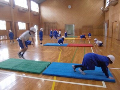マット運動に取り組んでいます。