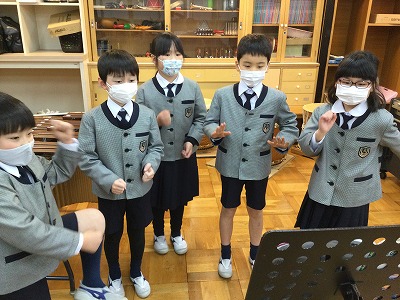 “音楽ランド”の楽しい歌を紹介した後は、先週に学習した「♪さんぽ」を“手話”で歌ってみようと呼びかけました。