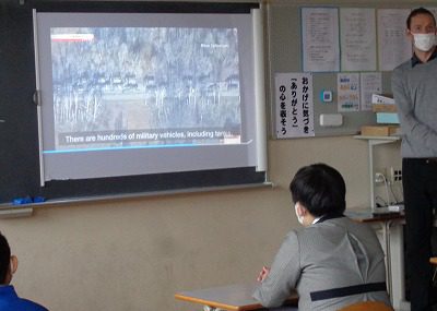 Today we watched an NHK news clip about the recent events in Ukraine. Then we talked about some of the images and information presented in the video. We also talked about NATO and some new vocabulary words.