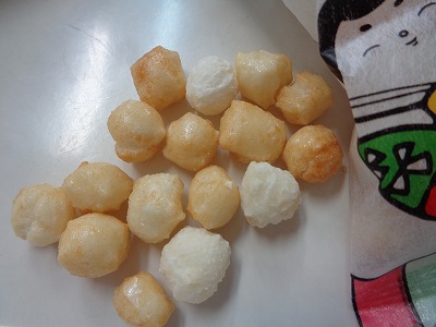 関西の主流は直径1cmほどのあられの素焼きです。しょうゆや塩、砂糖衣で味つけしてあります。今日の給食は関西風のひなあられでした。