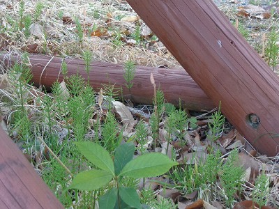 隣のビオトープの吊り橋の下には、土筆が出ています。寒さの中にも春の気配が感じられます。