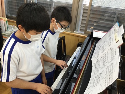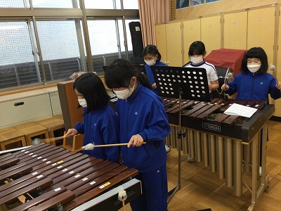 3年生最後の課題は「みんなで♪ミッキーマウスマーチ」と題して、マスクを外さずにできる合奏に取り組みます。