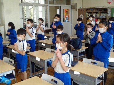そこで、3年生の子どもたちと黙祷を捧げました。