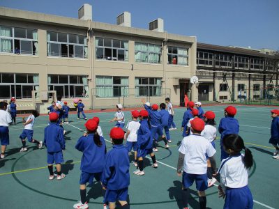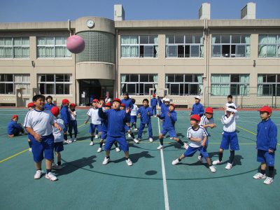 日頃は体育館のマイクを使って、アナウンスや司会進行を行うイベントゲーム委員ですが、今日は、春日和の運動場で実施しました。