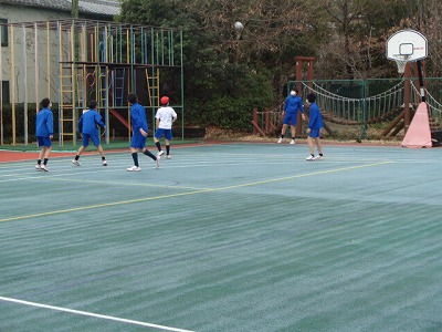 サッカーは人数が少なく、男子のみ。運動場いっぱい使ったコートで行っていました。人数が少ないせいか、パスがうまくつながりません。