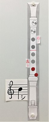 “手元”を見ないで、上の4しゅるいの 音楽を吹いてみましょう。