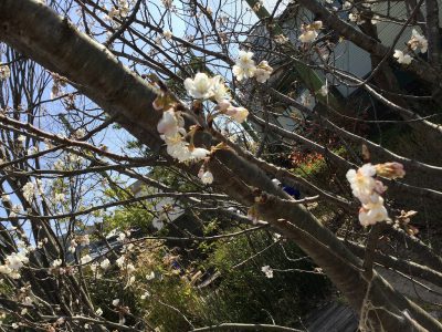みんなの予想通り、ビオトープの「オウトウ」が見事に満開の姿を見せてくれました。