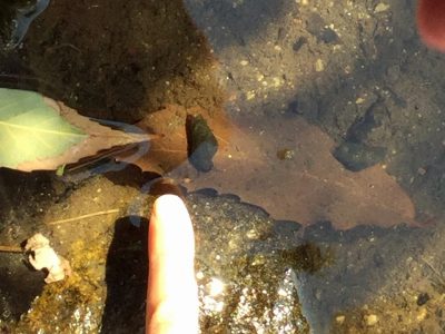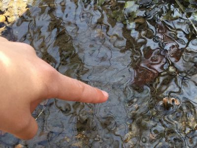 ようく見ると、2本の触覚のようなものを出して、ゆっくりと川底を歩いていました。