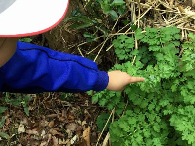 ビオトープの隅っこと看板を行き来して「オランダガラシ(クレソン)」が生き生きと葉を広げていることを教えてくれました。