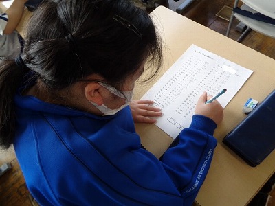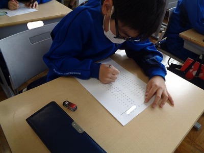 4年生に向けた3分間40問テストから授業をスタートさせました。