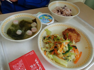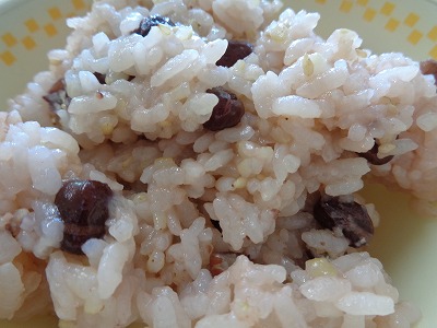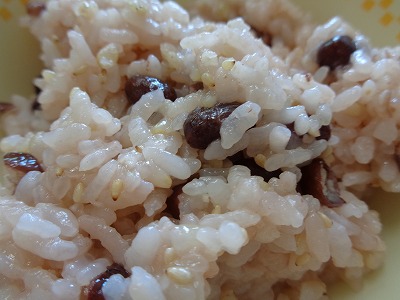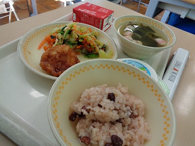 Today's lunch was "Sekihan" or "Red rice". This rice is served on special occasions to