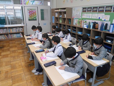 国語の時間に作った詩をお清書して、詩集を作っています。