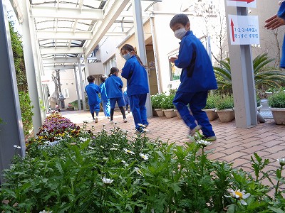 ノースポールなどの花ばなを見ながら、笑顔で教室に戻って行きました。