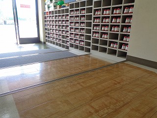 中央出入口です。2,3,4年生の外履き(赤靴)が、きれいに並んでいます。
