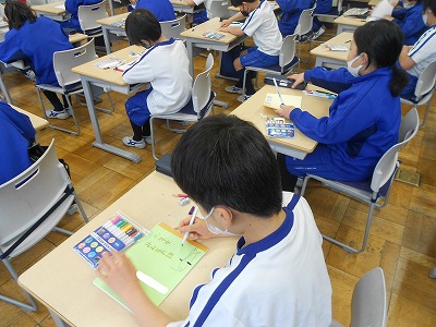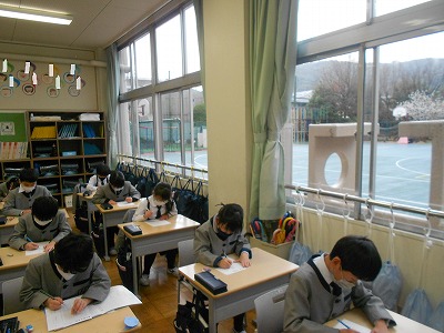 書写教材「うつしまる」を仕上げたり、漢字の復習をしたりしました。