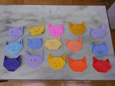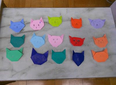 「カラフルかざり・折り紙係」さんたちが、みんなの前に出て、折り紙をしました。