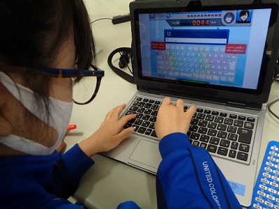 タイピング練習では、アプリを使用して、ゲーム形式で取り組みました。