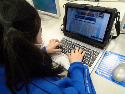 カタカナの打ち方や漢字の表し方、スペースの空け方など、自分のペースで熱心に向かっています。