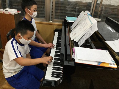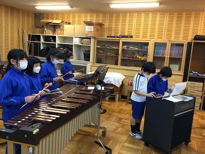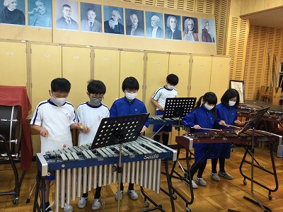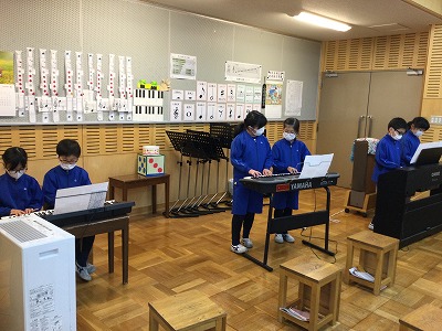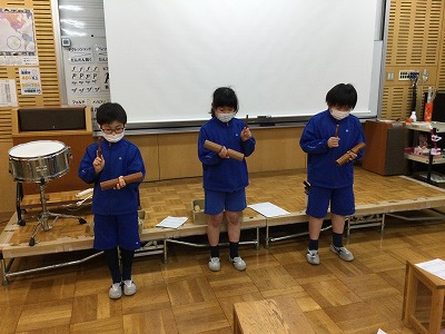 3年生最後の音楽の授業です。担当楽器をいろいろにチェンジして“ミッキーマウスマーチ”を合奏しています。