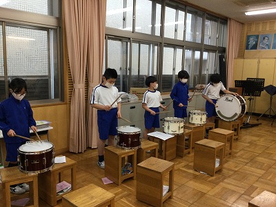 前の時間から仲間入りした“小太鼓&大太鼓”の担当を入れ替わったり…