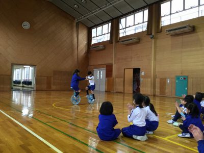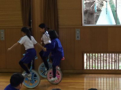組になっての一輪車乗りを見せてくれたグループもありました。また…