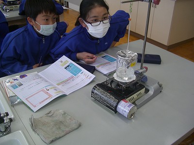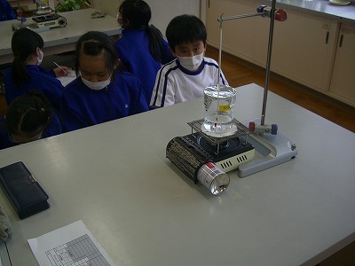 100℃より上がると予想していた人が半数ほどいましたが、今日の実験で水の温度変化は100℃までだと学習できました。
