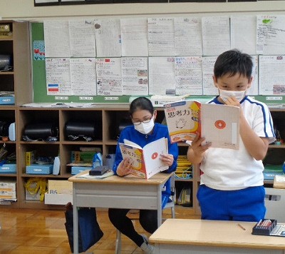 火曜日の昼根っこタイムは、毎週「思考力ドリル」に挑戦しています。今日は、「中学校にいったら、お弁当がいいか、給食がいいか」という質問に対して、選択・理由の文章を書きます。理由の文章をつけるための接続語に注意して、200字以内で書きます。