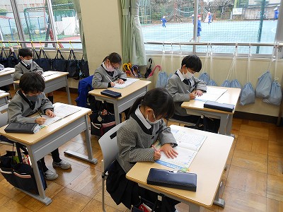 6校時の国語は、はじめに書き写しを行いました。「うつしまる」という書写のドリルにある「10分間スピードチェック」に取り組みます。
