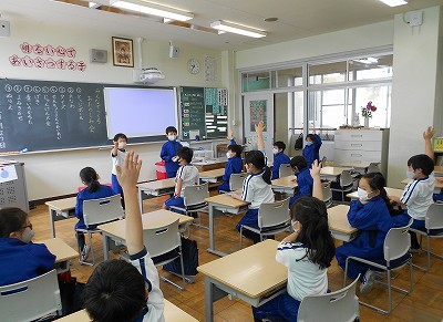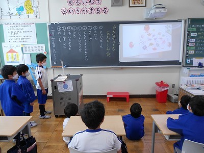1・2校時の学級活動に、お楽しみ会を開きました。それぞれのグループ毎に準備してきたことをみんなに説明して、みんなで楽しい時間を過ごしました。