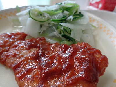 子ども達の大好きな豚肉のケチャップ焼を間近で見ると、こんな感じです。