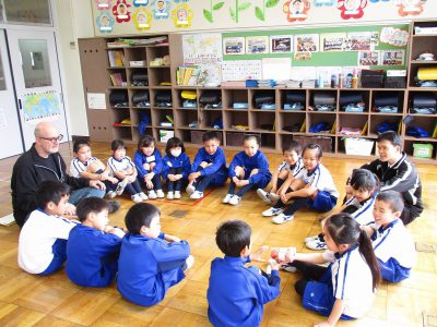 円になって、今日もいろいろな英語表現を学びます。