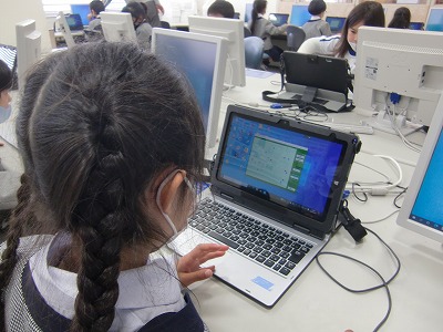 タブレットのタッチパネルを使って操作することに慣れているので、マウスは少し苦手という児童も多かったようですが、みんな興味深く取り組んでいました。