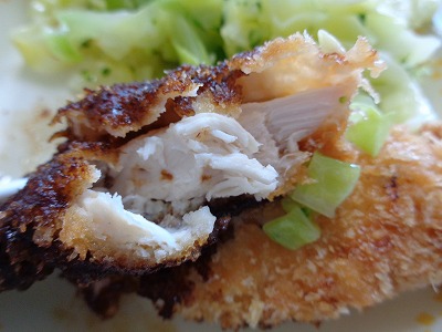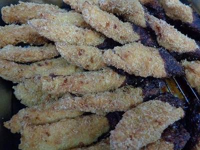 パン粉の衣が厚くなりすぎないように、粉をよくはたきながらパン粉をつけることがポイントです。
