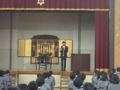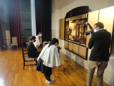 「礼拝係」が2年ぶりに再開し、「いまささぐ」の聖歌とともに御仏様に「お光・お香・お花」をお供えしました。