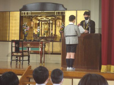 この1年間、それぞれの学年でいろいろなことに励んできた証です。身体の成長とともに、学業も、利他の心についても多くのことを学び、身に付けてきました。