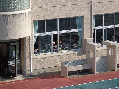 ふと教室を見ると、みんなが手を振ってくれていました!「みんな、おはよ~!」