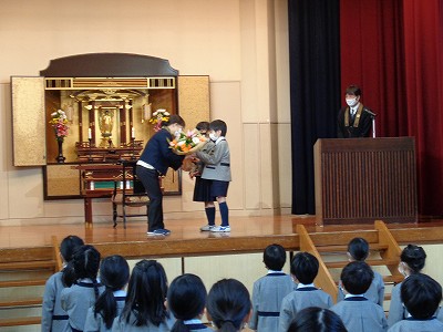 終わりに、明日から始まる春休みで、事故のないように過ごすこと。また、早寝・早起き・朝ご飯で体調を整えること、毎日元気で過ごしてくださいとのお話でした。