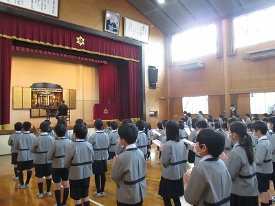 礼拝と修了式です。新型コロナウイルス感染防止の対応として、時間を短縮しての実施となりました。久しぶりに文教キッズがそろいました。みんな元気そうです!