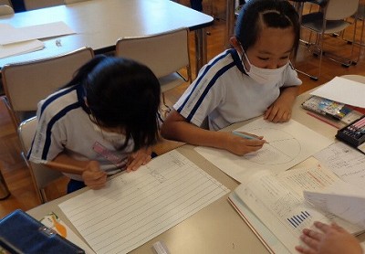 「折れ線グラフにする?」「棒グラフにする?」など、これまでの算数の知識も活かしながら、資料をまとめていきます。