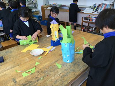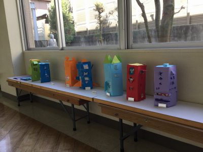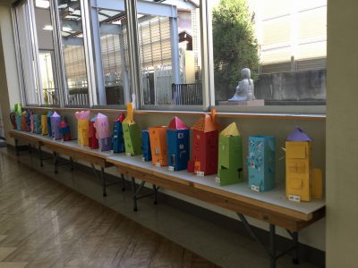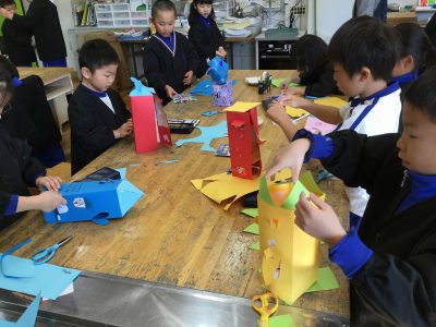 カッターの学習は、ほぼ先週で済ませているので、あとは、窓から見える中の様子を作るだけです。中身を貼って、外から開いてみて…