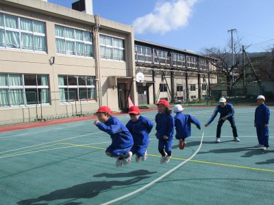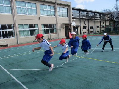 縄をよく見て、声をかけ合って跳んでいます!