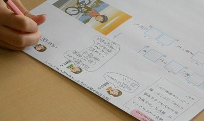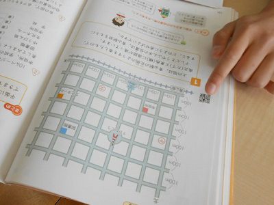 算数は「直方体と立方体」について学習を進めています。今日は「平面」と「空間」の位置の表し方について学習しました。まずは、平面の位置の表し方について、教科書の地図を例にして考えます。