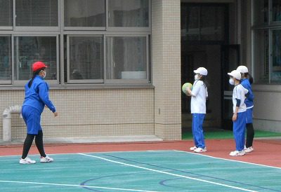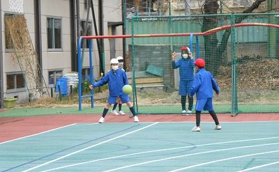 体育は「ハンドベース」を行いました。練習試合は今日で4回目です。