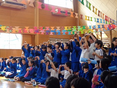 3/7木【ありがとうの会】 お知らせ 2019/03/07 今朝は、6年生に王冠を届けることから始まりました。 廊下に整列して、そーっとみんなでかぶってみました。 班長さんになった気分です。 6年生の教室では、班長さんから出迎えを受けて、少し複雑な気持ちで渡していた3年生です。 会が始まり、アーチから登場した班長さんを見ると、王冠がぴったりでした。 中学年の音楽発表は、送る言葉も演奏も一生懸命頑張っていました。 6年生の手拍子に後押しされ「B・U・N・K・Y・O BUNKYO小学校!」元気いっぱいの姿です。 ←前の記事 お知らせの一覧 次の記事→ 文教トピックス 学年だより1年 学年だより2年 学年だより3年 学年だより4年 学年だより5年 学年だより6年 一覧はコチラ カテゴリー 文教トピックス (200) 文教トピックス (5) 学年だより1年 (160) 学年だより1年 (3) 学年だより2年 (3) 学年だより2年 (160) 学年だより3年 (3) 学年だより4年 (3) 学年だより5年 (3) 学年だより6年 (3) 文教小ニュース (4,428) お知らせ (1,004) イベント (12) 入試関連 (13) 2024年度 (1,063) 文教トピックス (198) 学年だより1年 (172) 学年だより2年 (170) 学年だより3年 (171) 学年だより4年 (177) 学年だより5年 (175) 2023年度 (878) 文教トピックス (204) 学年だより1年 (165) 学年だより2年 (167) 学年だより3年 (169) 学年だより4年 (173) 2022年度 (738) 文教トピックス (216) 学年だより1年 (174) 学年だより2年 (174) 学年だより3年 (174) 2021年度 (571) 文教トピックス (217) 学年だより1年 (177) 学年だより2年 (177) 2020年度 (455) 文教トピックス (249) 学年だより1年 (206)
