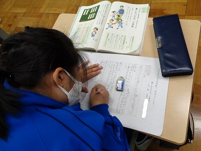 書き終わったら、誤字脱字がないかを見直し、発表の練習をしています。