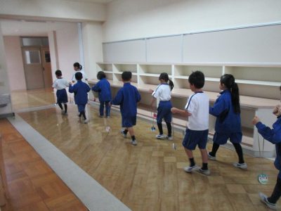 朝のねっこタイムの時間に6年生の教室へプレゼントを届けに行きました。