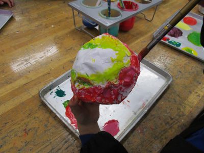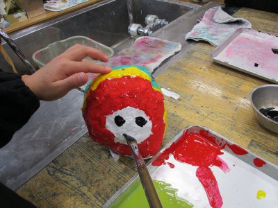 先週、張り子で作っただるまに色を塗ります。