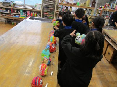 完成した人から、だるまを並べて、造形室で乾かしています。